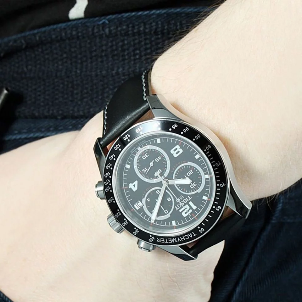 Tissot V8 T039.417.16.057.02 Black Chronograph Dial Leather 43mm